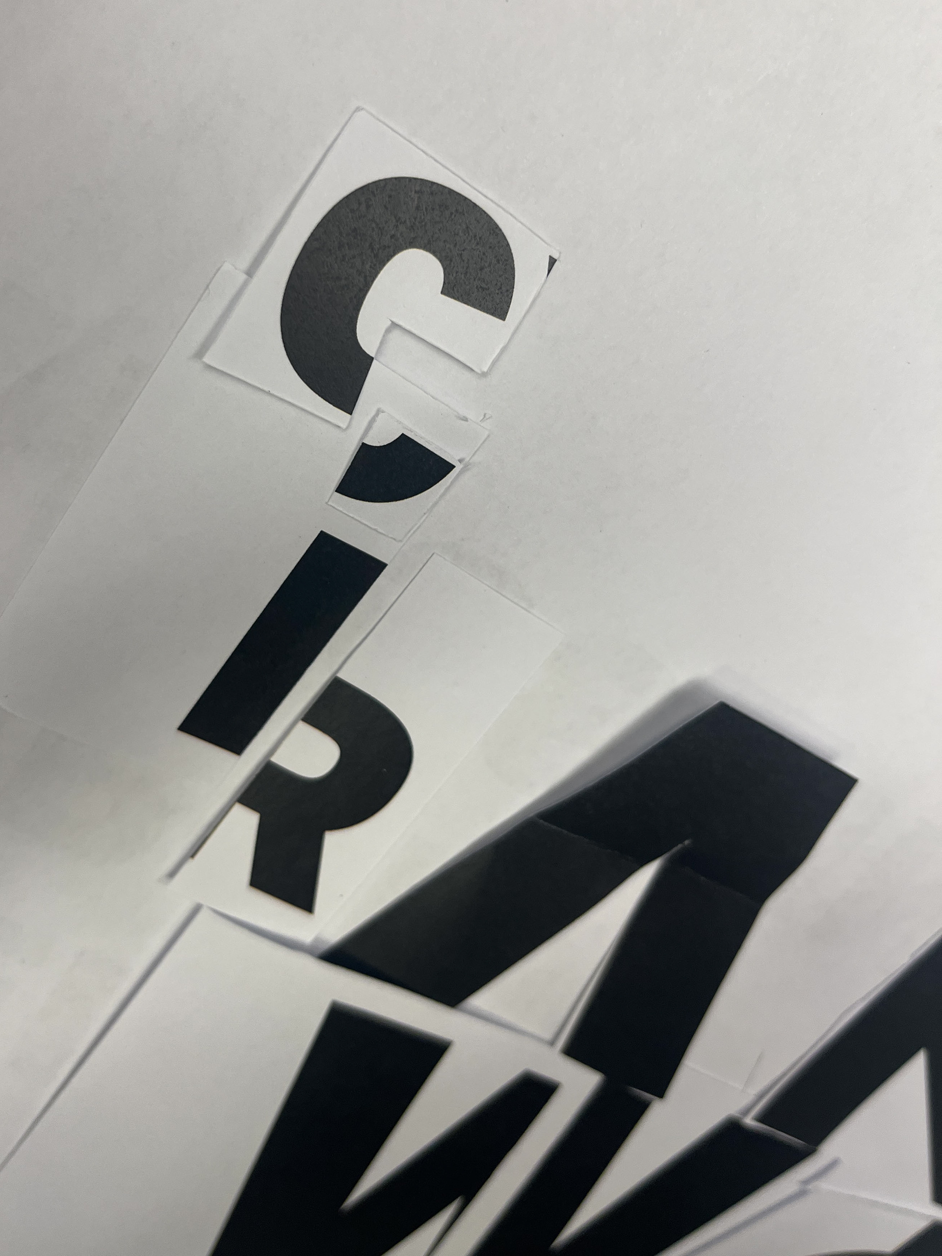 After researching what I wanted to portray in my posters, I went through a series of 'sprints' to get myself creating things that could be used for future posters. These consisted of photography, physical type manipulation, arrangement of elements, sketches, collage, and more.